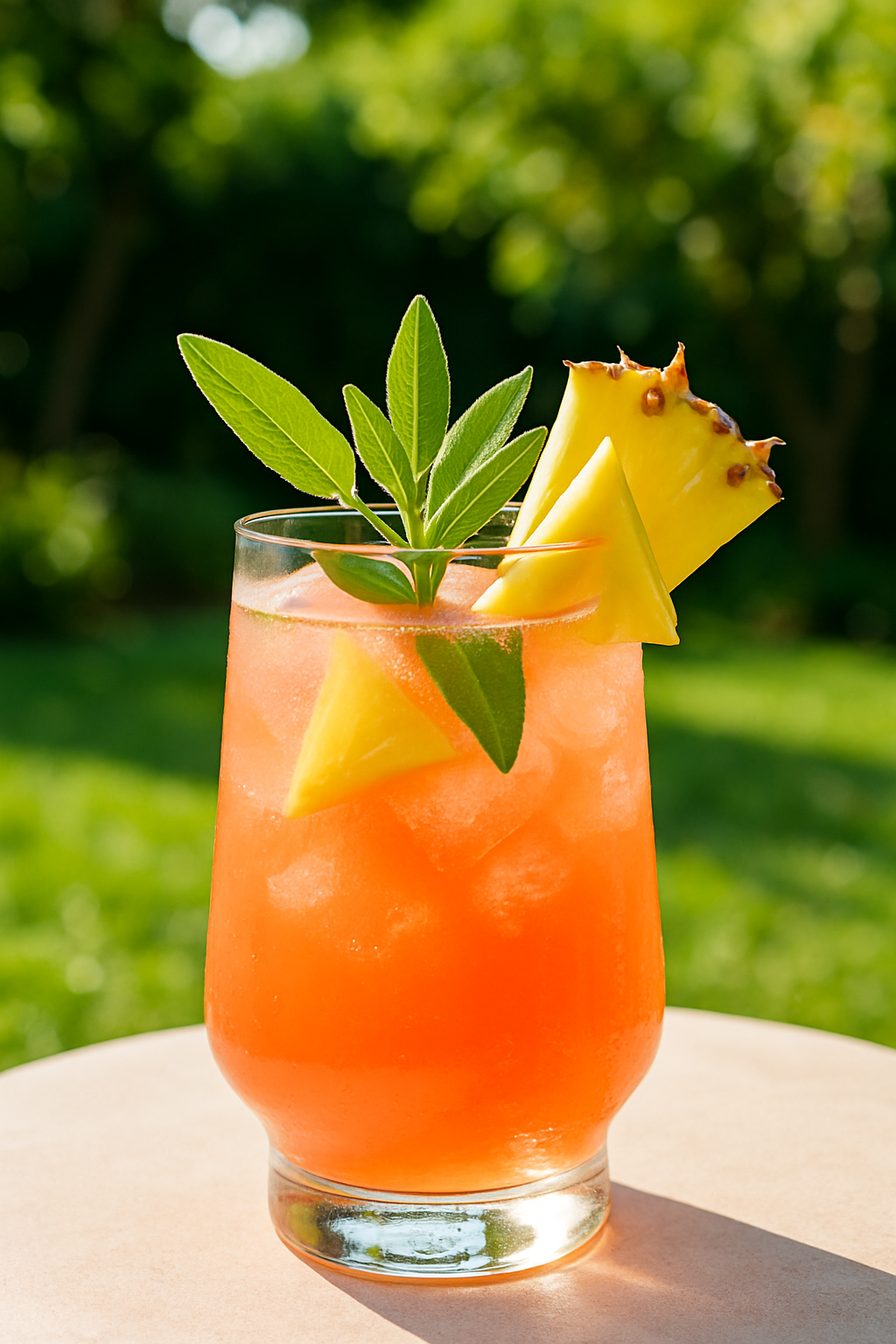 - Fill glasses with ice cubes and pour the cooler over the ice. Garnish with pineapple wedges and extra sage leaves before serving.